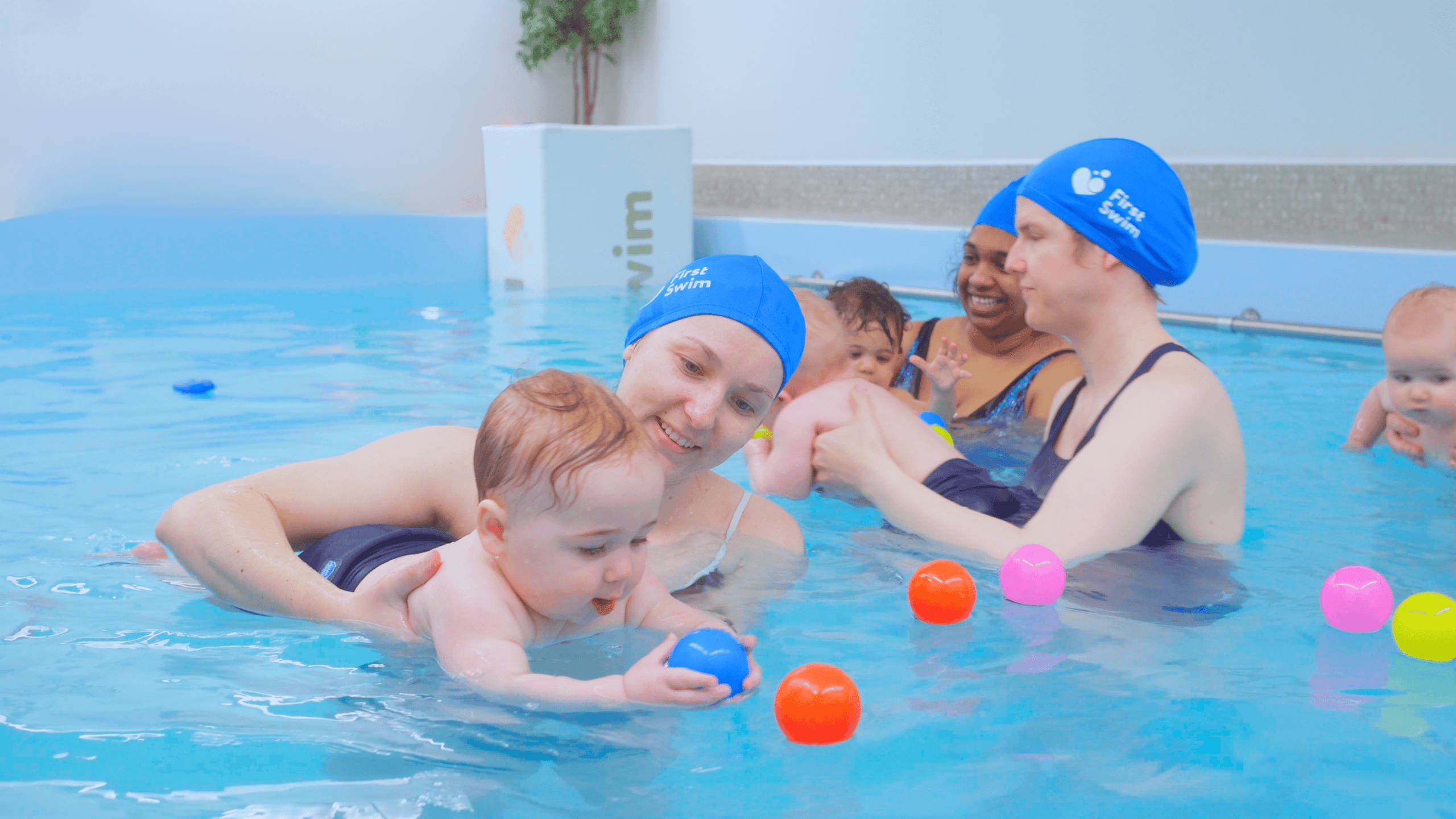 At First Swim we run swim lessons for babies & toddlers from 10 weeks to 3 years old, 7 days a week in our own onsite swimming pool, kept at a balmy 33°C. This is the perfect place for parents to further develop the bond with their baby in the water whilst teaching them a life skill at the same time.